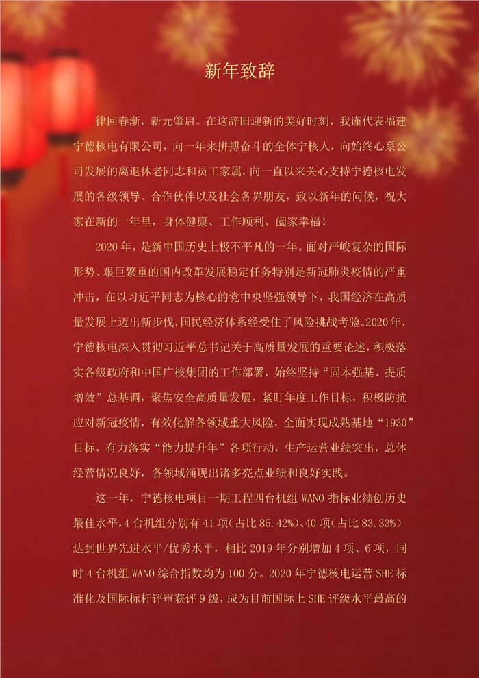 公司黨委書記、總經理田輝宇2021新年致...